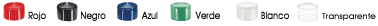 Disponibles en rojo, negro, verde, blanco o transparente.